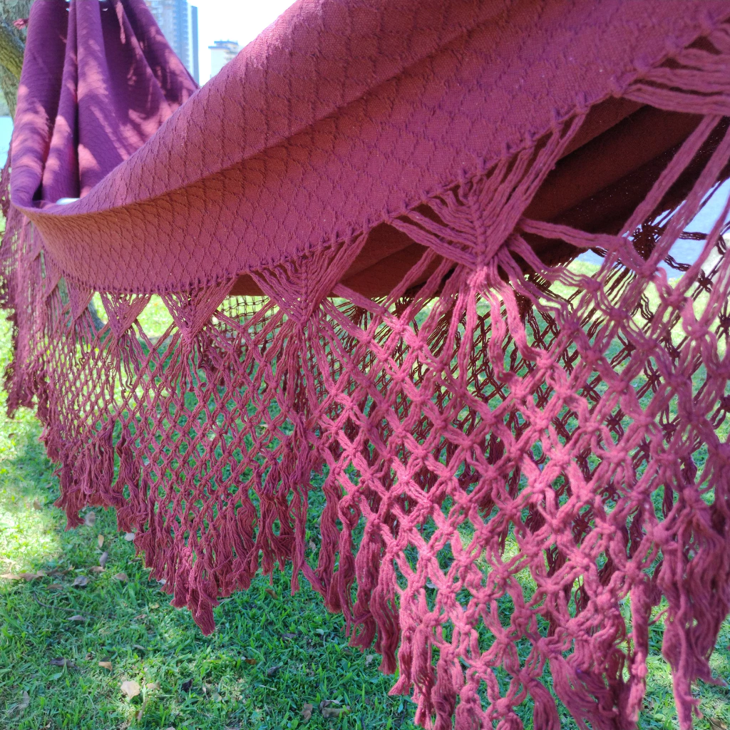 A Rede Bucho de Boi da Paraíba das Redes é confeccionada artesanalmente em macramê, com tecido 100% algodão de alta qualidade. Com medidas de 4,00m punho a punho, esta rede é espaçosa e resistente, suportando até 250kg. O tecido e o acabamento reforçado garantem durabilidade e conforto. As rendas feitas em macramê dão um toque artesanal e elegante à rede, tornando-a também um item decorativo para o seu lar.esistência e longa durabilidade, pois tem punhos reforçados.